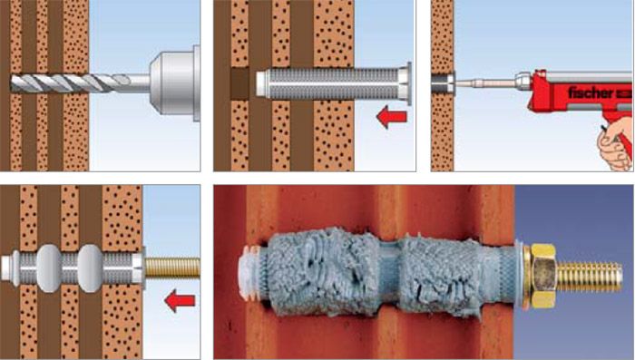 - Najspoľahlivejšie riešenie pre dierovanú tehlu. Odporúčame chemickú kotvu vždy, keď ide o ťažšie prvky, od väčších skriniek až po boiler.